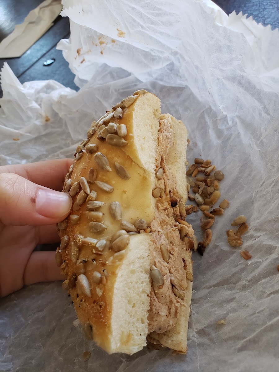 About $1.10 a bagel (before toppings) with a great selection of baked goods and toppings. Crazy cream cheese variety including lox, scallion, bacon, jalapeno, etc. I got the sunflower seed bagel with brown sugar cream cheese. Perfect portions as well. Some places skimp on cream cheese but I'm satisfied here. Great customer service as well. Cash only.